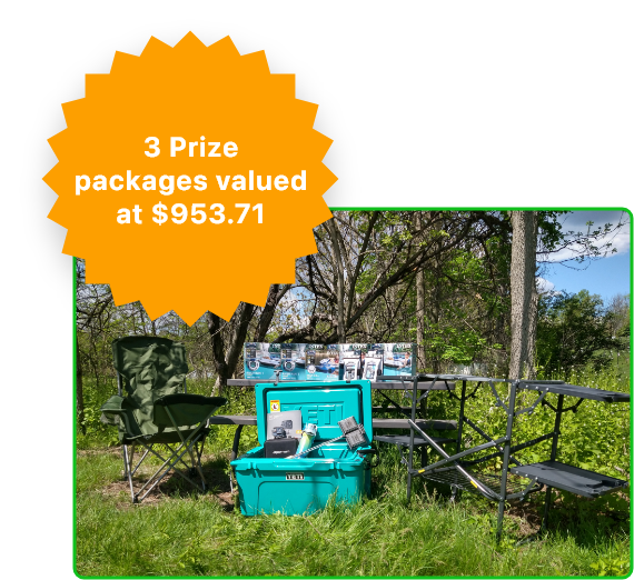 Sign up here for your chance to win one of 3 awesome outdoor prize packages.